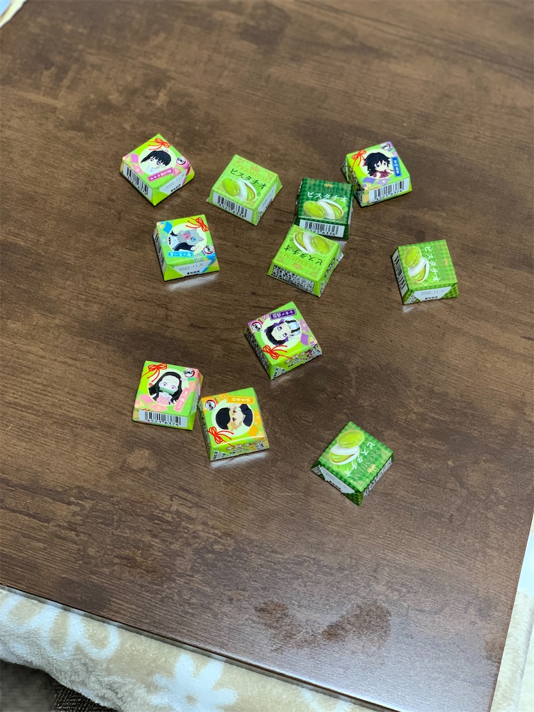 2022-01-21 鬼滅のピスタチオ チロルチョコ ピスタチオの型。 チロルの呼吸っ!!! すみません、にわかどころか1話もみたことがありません。 炭治郎がどの人かわかりません。 チロルのパッケージ集めが趣味なだけです。 ٩( ᐛ )و 緑尽くめおわり。